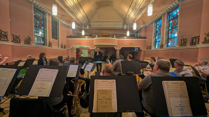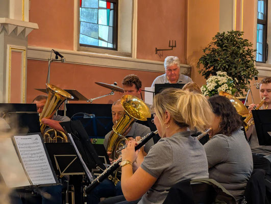 Dirigent Stefan Zimmer hatte sich im Vorfeld ein besonderes Konzept überlegt: Er wollte dem Publikum die Geschichte von Märschen und Polkas näherbringen und das Programm anschließend mit Werken aus der Popmusik abwechslungsreich gestalten. Charmant moderierte er den Konzertnachmittag und teilte sein Wissen über die Blasmusik, sodass die Zuhörerinnen und Zuhörer die zuvor erklärten musikalischen Merkmale direkt in den Stücken wiederentdecken konnten.