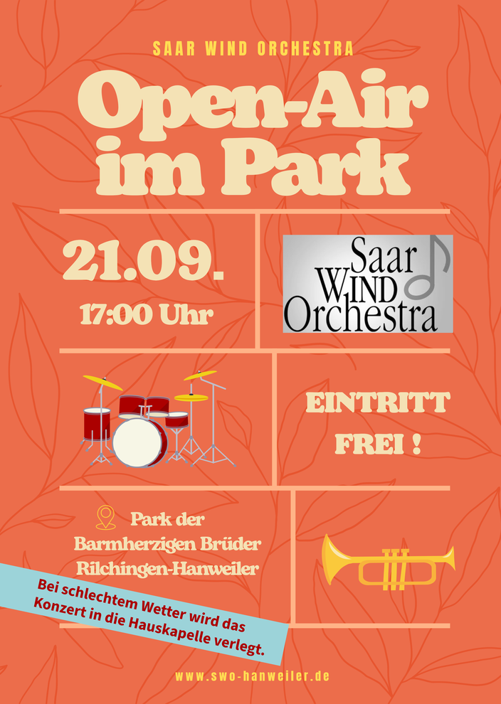 Am kommenden Sonntag um 17:00 Uhr lädt das Saar Wind Orchestra zu einem besonderen musikalischen Erlebnis unter freiem Himmel ein.